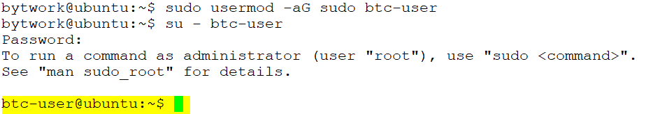 usermod -aG sudo btc-user