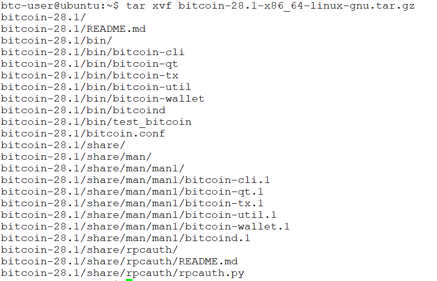 tar xvf bitcoin-28.1-x86_64-linux-gnu.tar.gz