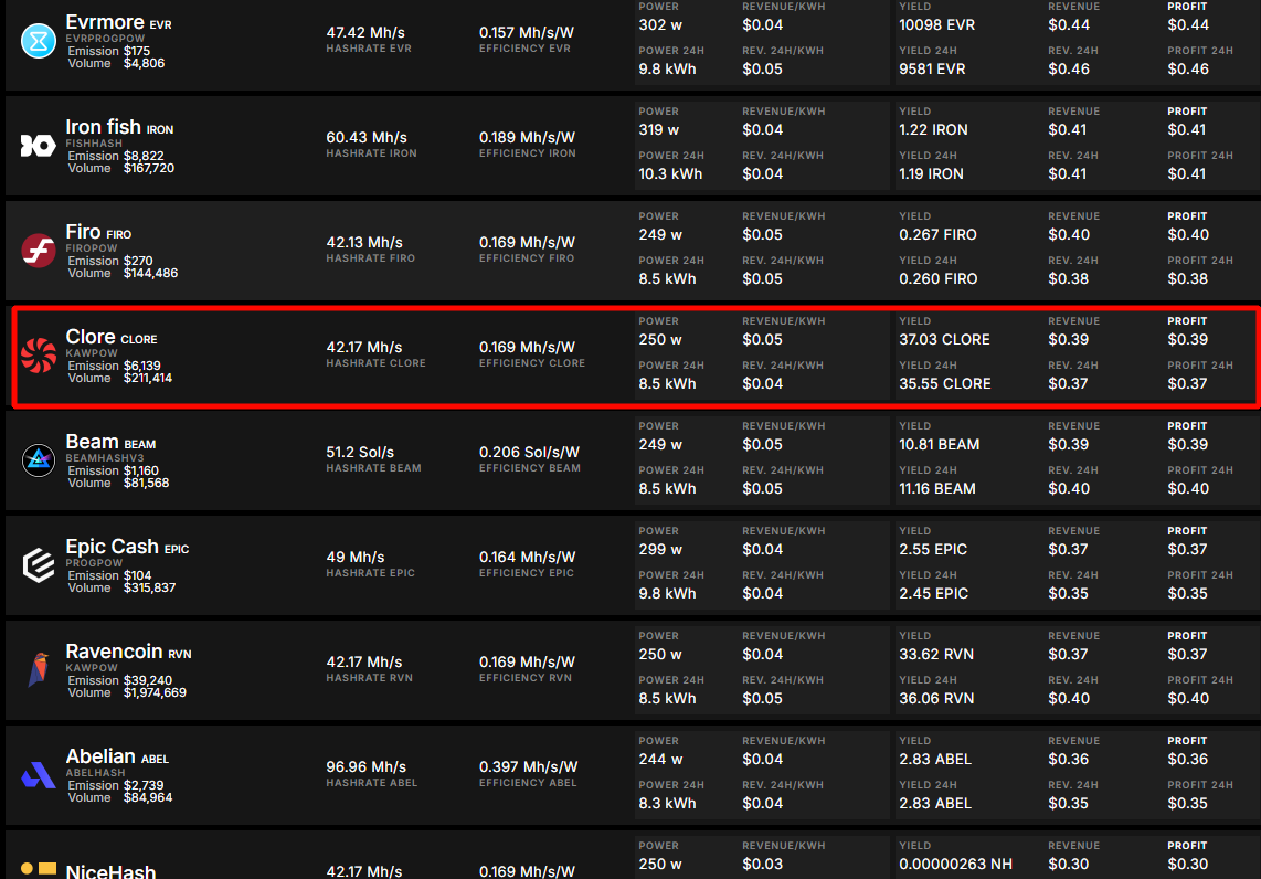 Как майнить Clore (CLORE), алгоритм KawPow?