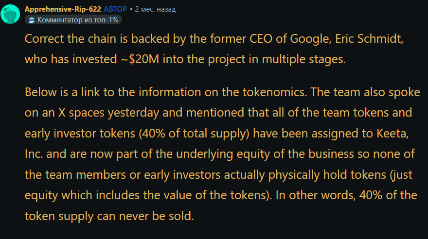 Проект разрабатывает блокчейн первого уровня для токенизации. Среди инвесторов значится бывший генеральный директор Google Эрик Шмидт.