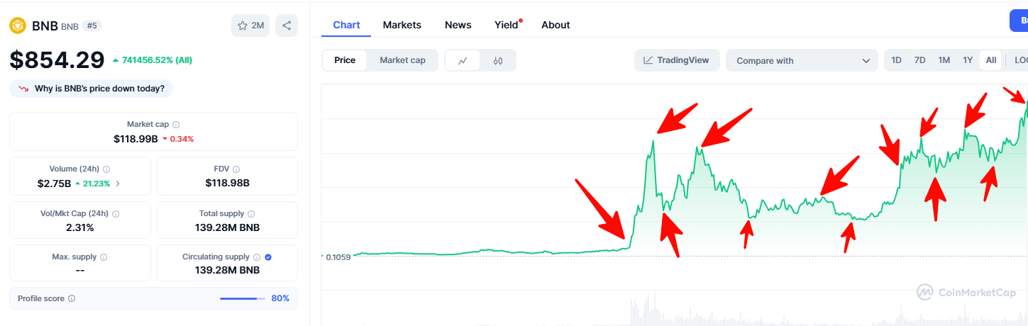 Лично мы видим дальнейшее развитие BNB в виде американских горок, где будут, как и взлеты, так и падения.