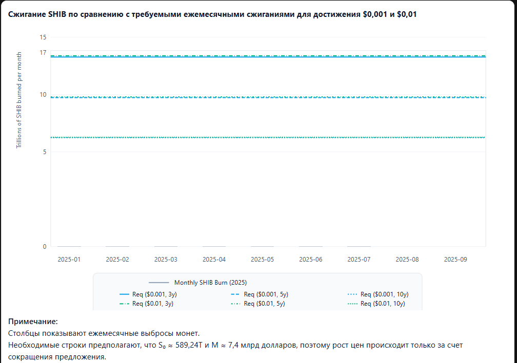 Требуемые ежемесячные сжигания (триллионы SHIB в месяц)