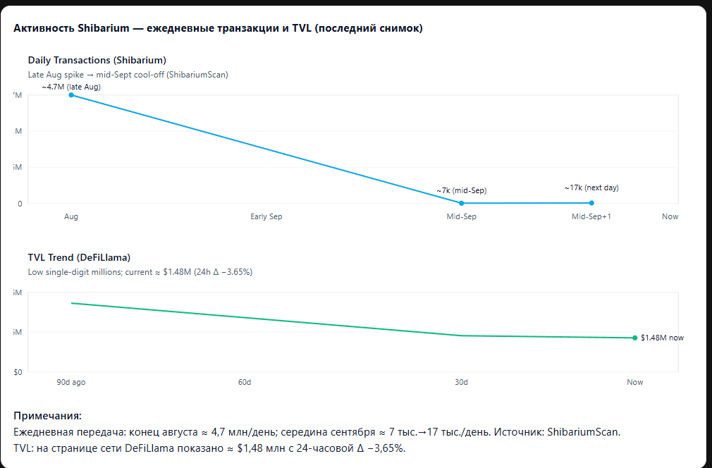 - По данным DeFiLlama, н TVL на Shibarium составляет около $1,48 млн.