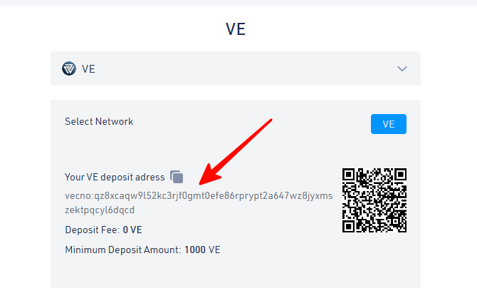 - Coin: выберите VE (если нет в списке, впишите вручную)