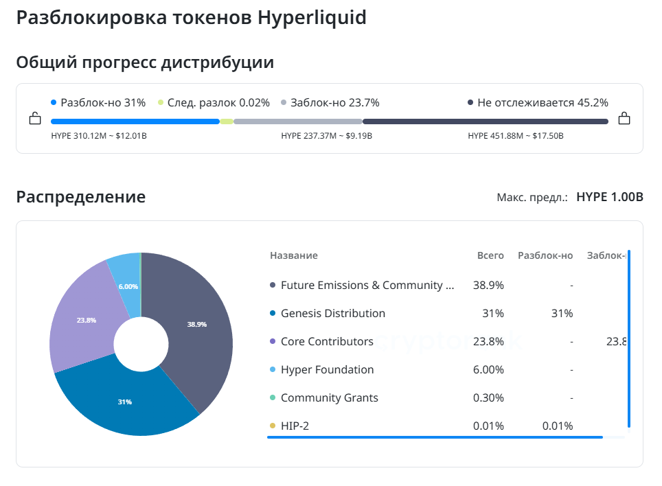 Блокировка доли владельцев (23,8%) снижает риск инсайдерских распродаж и обрушения цены токена.