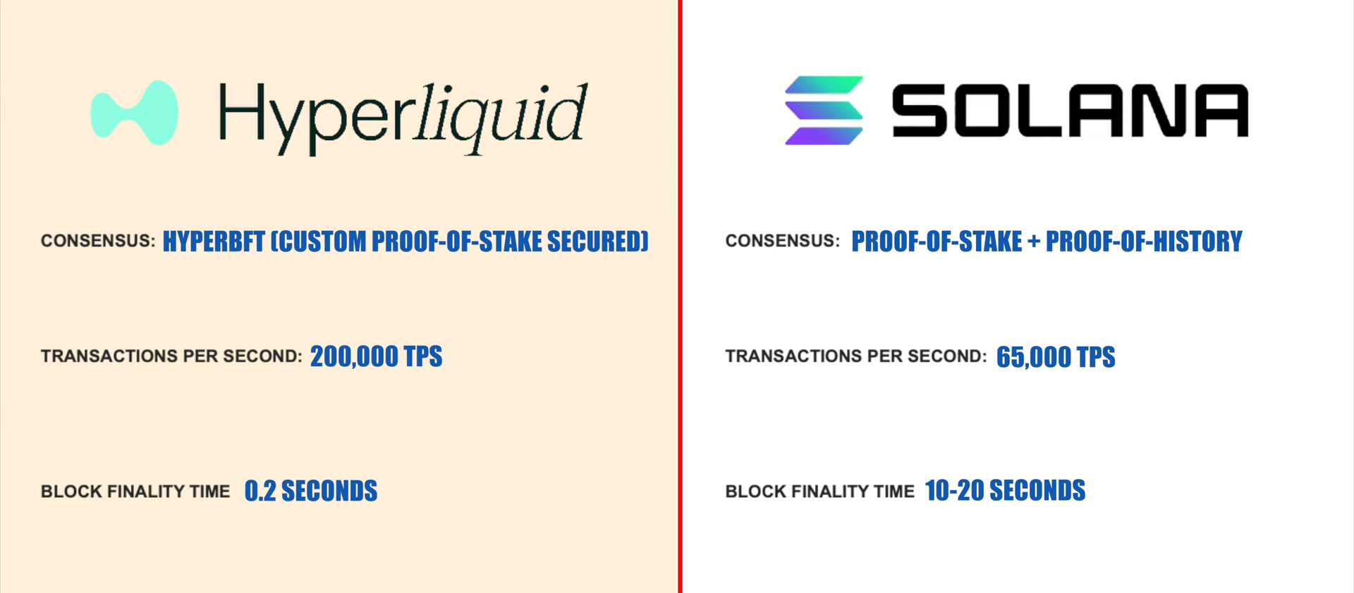 - Solana обрабатывает около 65 000 транзакций в секунду с временем финализации блока 10–20 секунд, а Hyperliquid - 200 000 транзакций с финализацией менее 0,2 секунды.