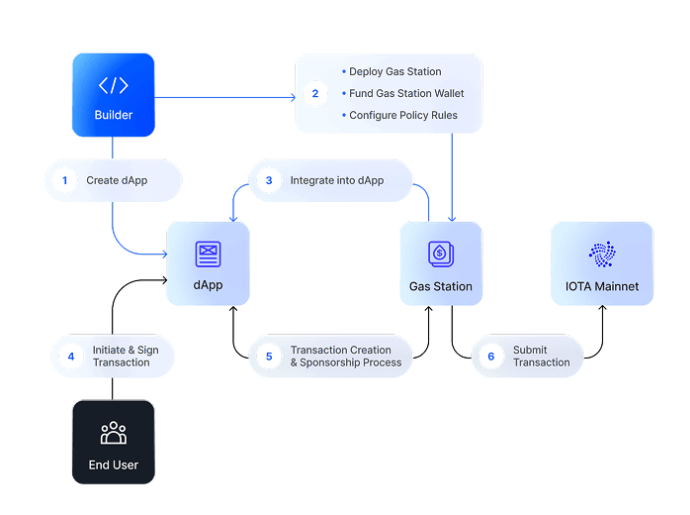 Комиссии за транзакции измеряются долями цента и при росте нагрузки не увеличиваются, поскольку безопасность сети усиливается вместе с числом операций. Это позволяет реализовать механизм IOTA Gas Station.