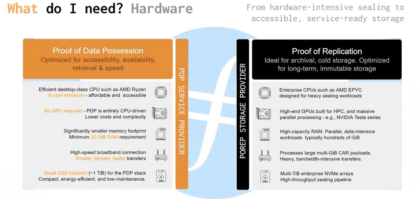 Filecoin has 2 types of storage: PDP for home PCs and PREP for data centers: