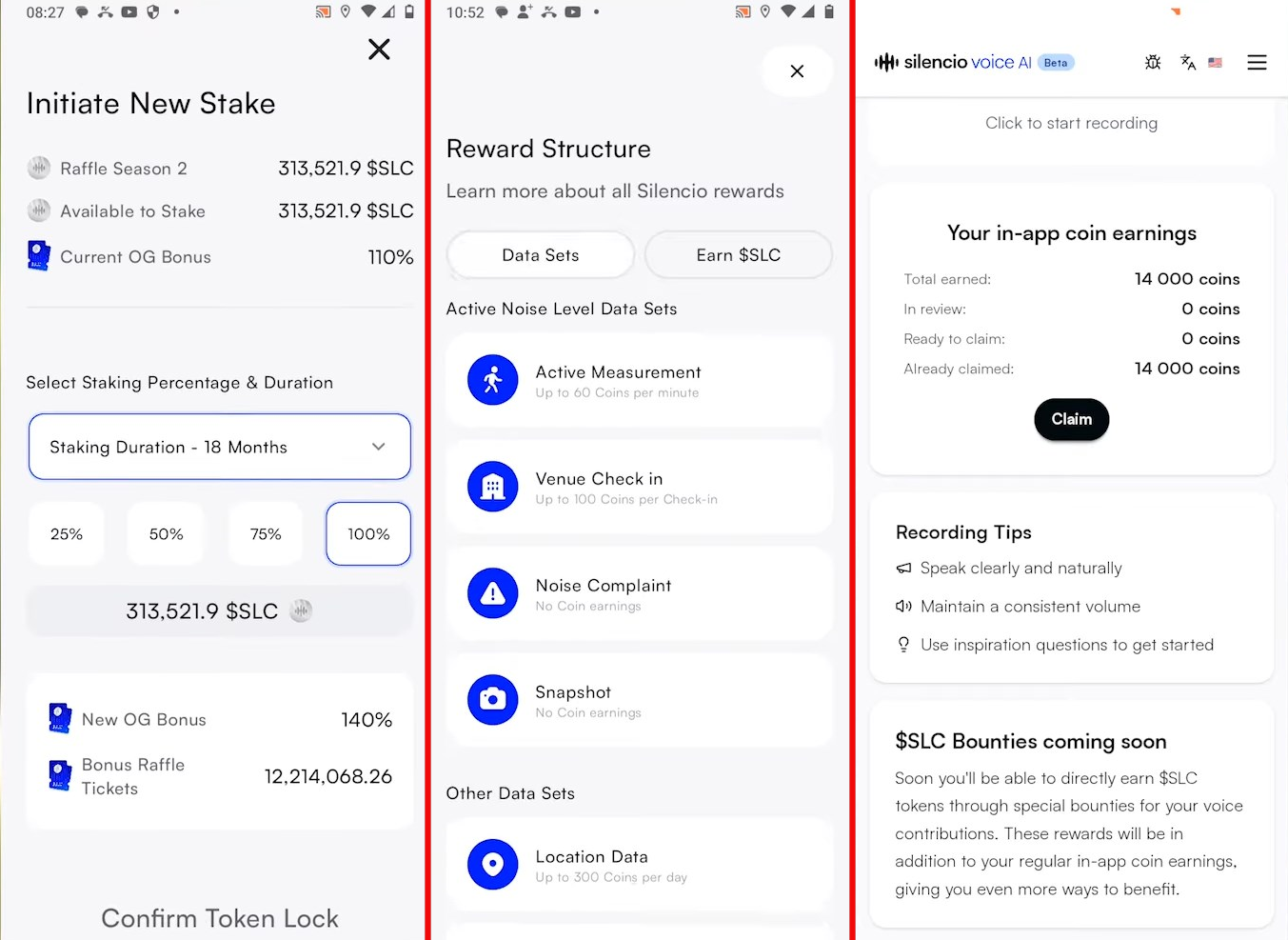 Earn in-game noise coins by measuring noise levels. Each coin equals 1 ticket - the more tickets you collect, the more SLC tokens you receive.