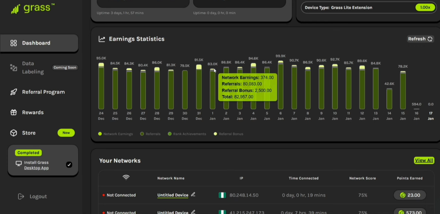 To maximize your Grass earnings, install the extension on multiple browsers and keep them all open along with the desktop application.