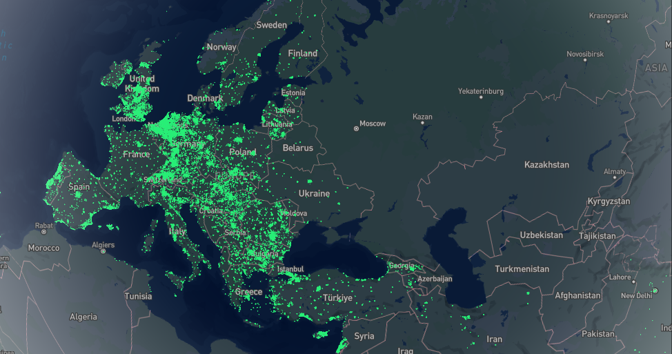 Coverage on the world map is currently strongest in the USA, Canada, and Taiwan, moderate in Europe and Southeast Asia. There are no spots yet in Russia and Kazakhstan. Thus, the network does not operate in all regions.