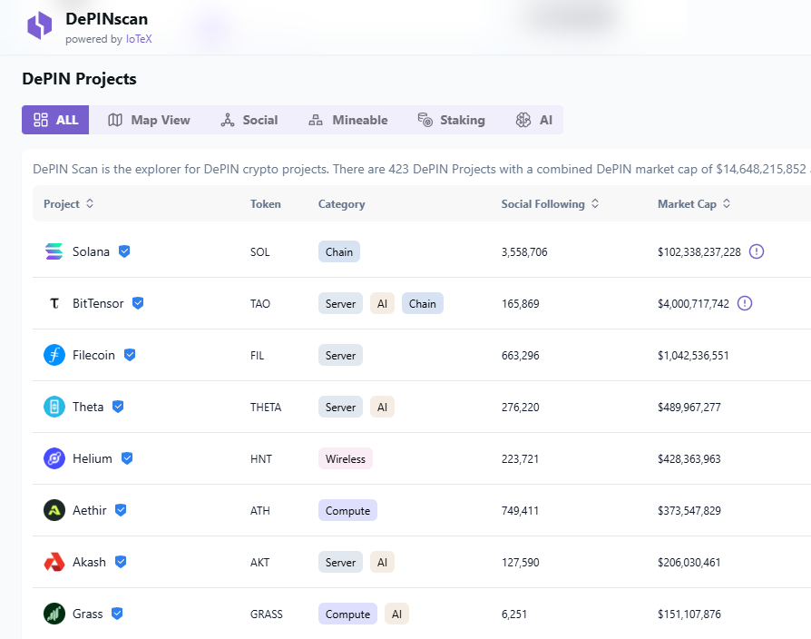 According to data from DePIN Scan, the total market capitalization of the DePIN sector is estimated at $14.65 billion. The DePIN network unites over 41.8 million physical devices worldwide.