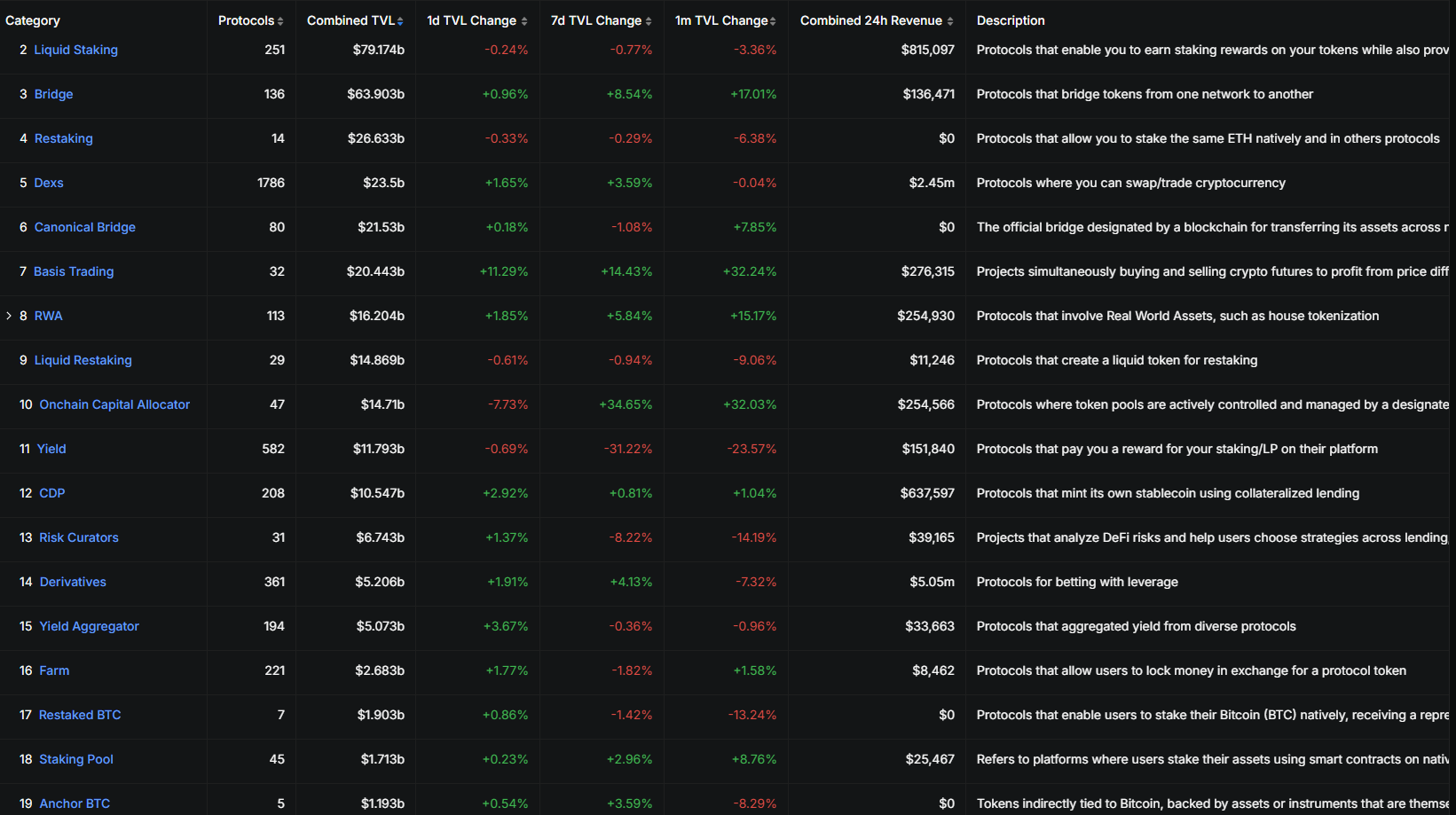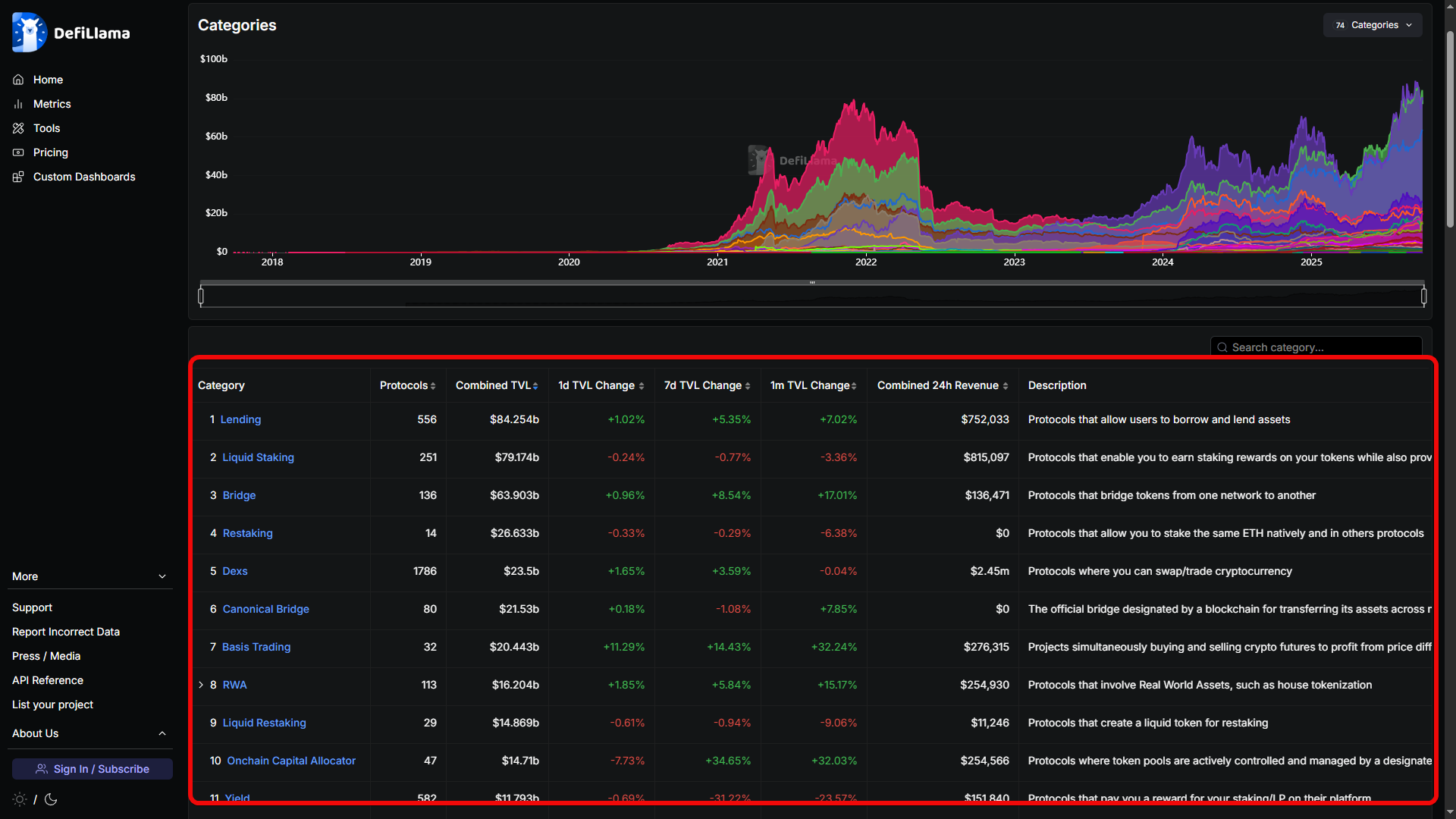 section collects 73 categories of DeFi protocols, each with a brief description. By studying the basic categories, it will be easier for you to navigate the service.