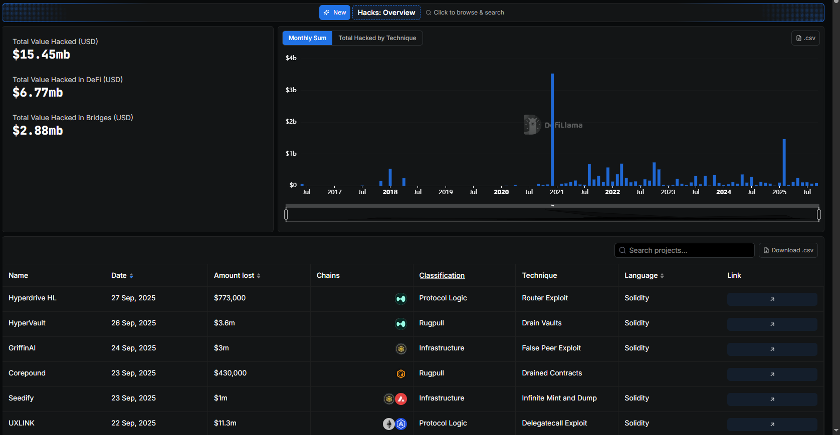 tab. It publishes fresh data on hacked protocols, loss amounts, and incident dates.