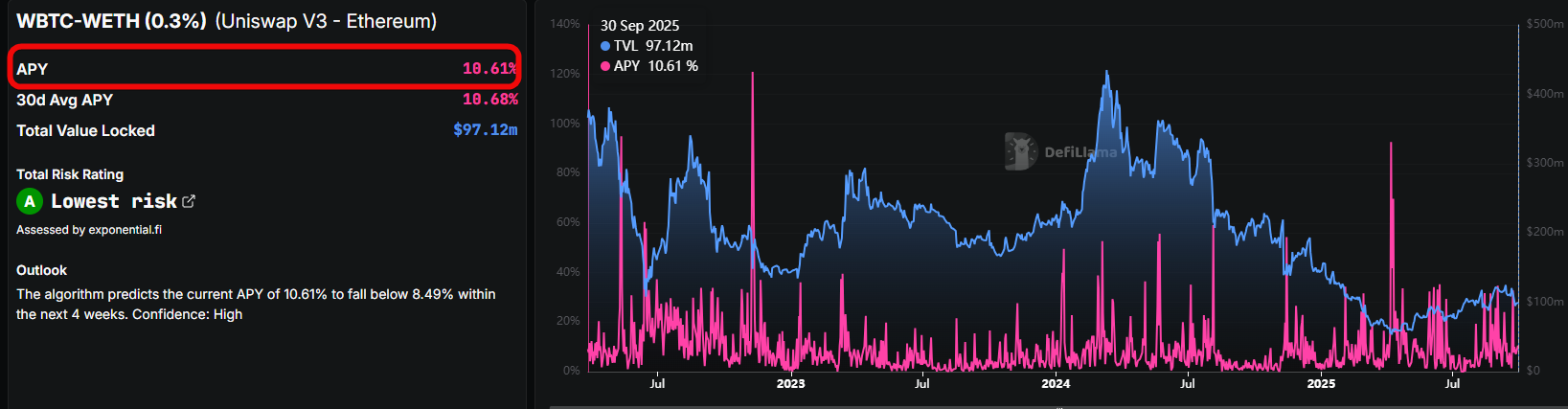 On Uniswap, you can get about 10% annual yield just by depositing BTC into a pool.