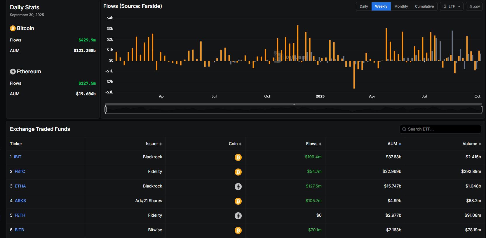 DefiLlama also shows Bitcoin and Ethereum ETFs. These are big money funds buying cryptocurrency and pushing prices up.