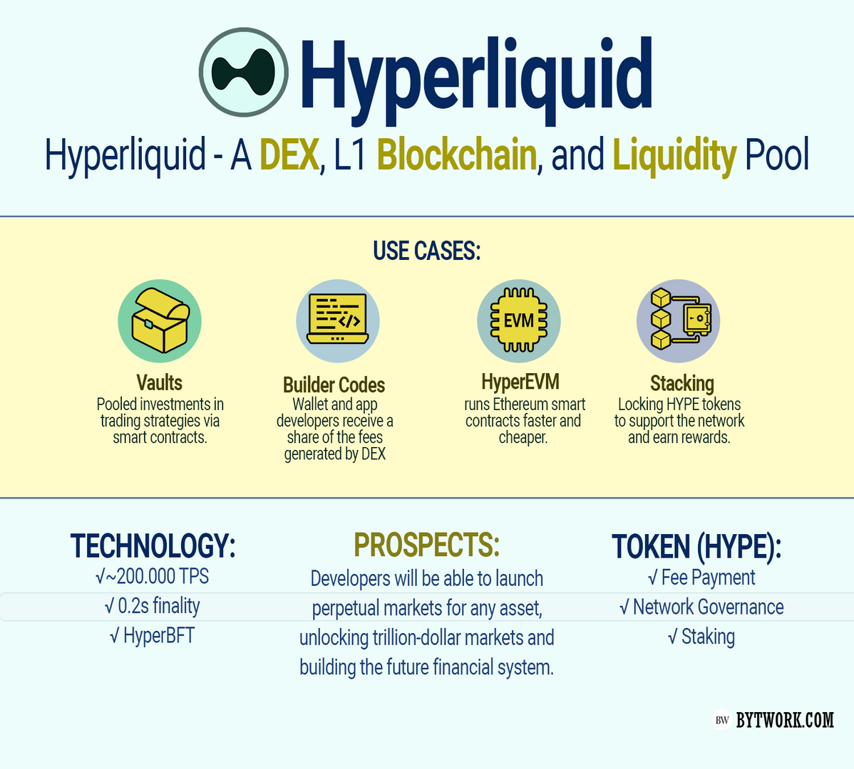Hyperliquid is a high-performance decentralized exchange with a Layer 1 blockchain, designed to combine the best features of centralized exchanges like Bybit and decentralized exchanges like Uniswap.