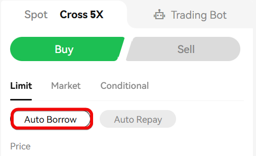 Click Cross 5x, select Auto Borrow, specify the amount, and trade. But it's important to compare conditions: sometimes margin trading, sometimes crypto loans are more profitable.