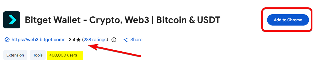 It is important to ensure the application is genuine: it has many reviews (280) and a blue verified developer checkmark. Over 400,000 users also confirm the reliability of the source. Incorrect installation can lead to loss of funds, so always verify the correct application before downloading!
