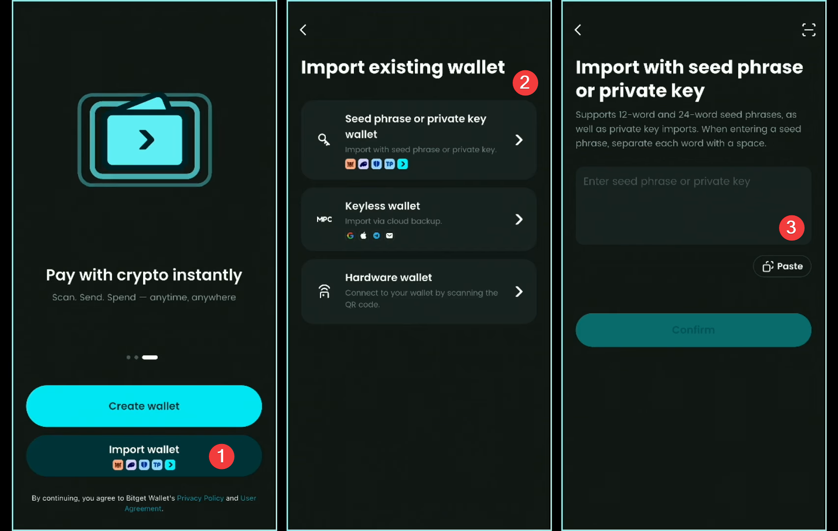 Now we will show how to recover the newly created wallet. Even if you lose your device or delete the Bitget application, you can simply download the application again on another device.
