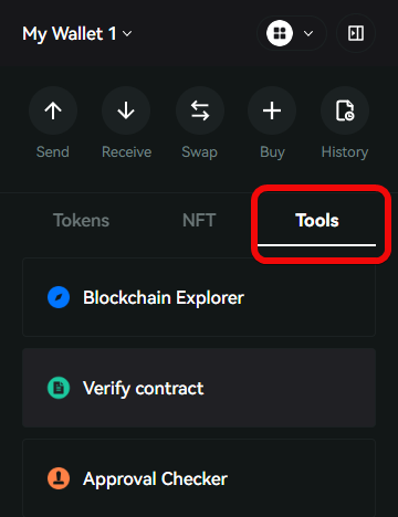 Below are tokens, NFTs, tools (blockchain explorer, contract/approval checks, batch transfer).