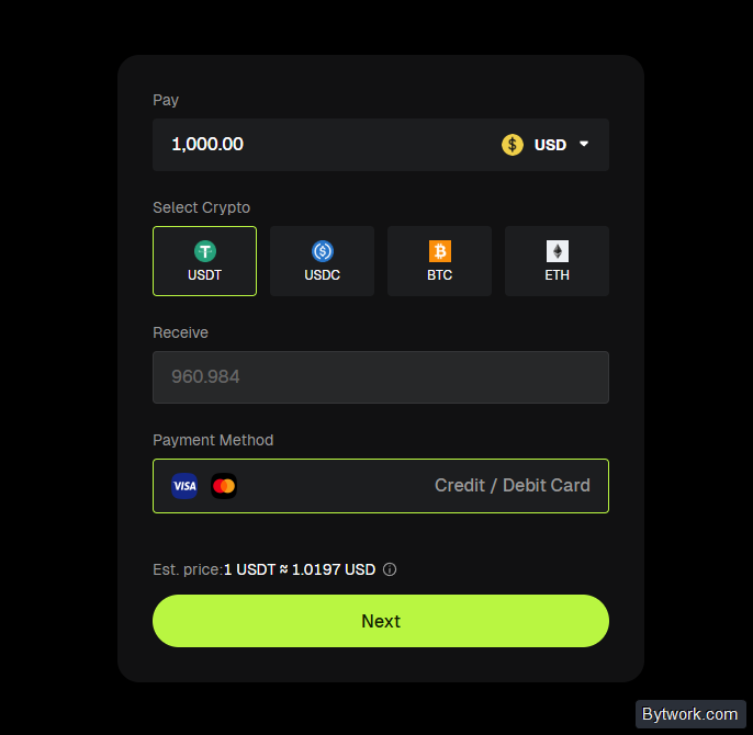 Это крайне невыгодный способ, и он так же требует верификацию личности. Для снижения комиссий можно купить стейблкоины на регулируемой площадке (например, Kraken или Coinbase) и перевести их на Bitunix через блокчейн, и это обойдется почти бесплатно. Однако Coinbase и Kraken работают не во всех регионах.