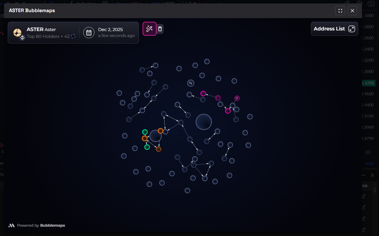 Например, ASTER в настоящее время хранится на 77 301 кошельке, что свидетельствует о сравнительно широкой дисперсии. Это помогает снизить опасения, что небольшая группа может контролировать значительную часть предложения и манипулировать рынком.