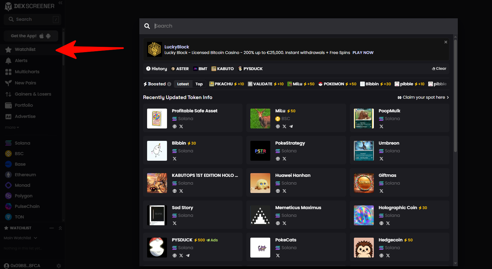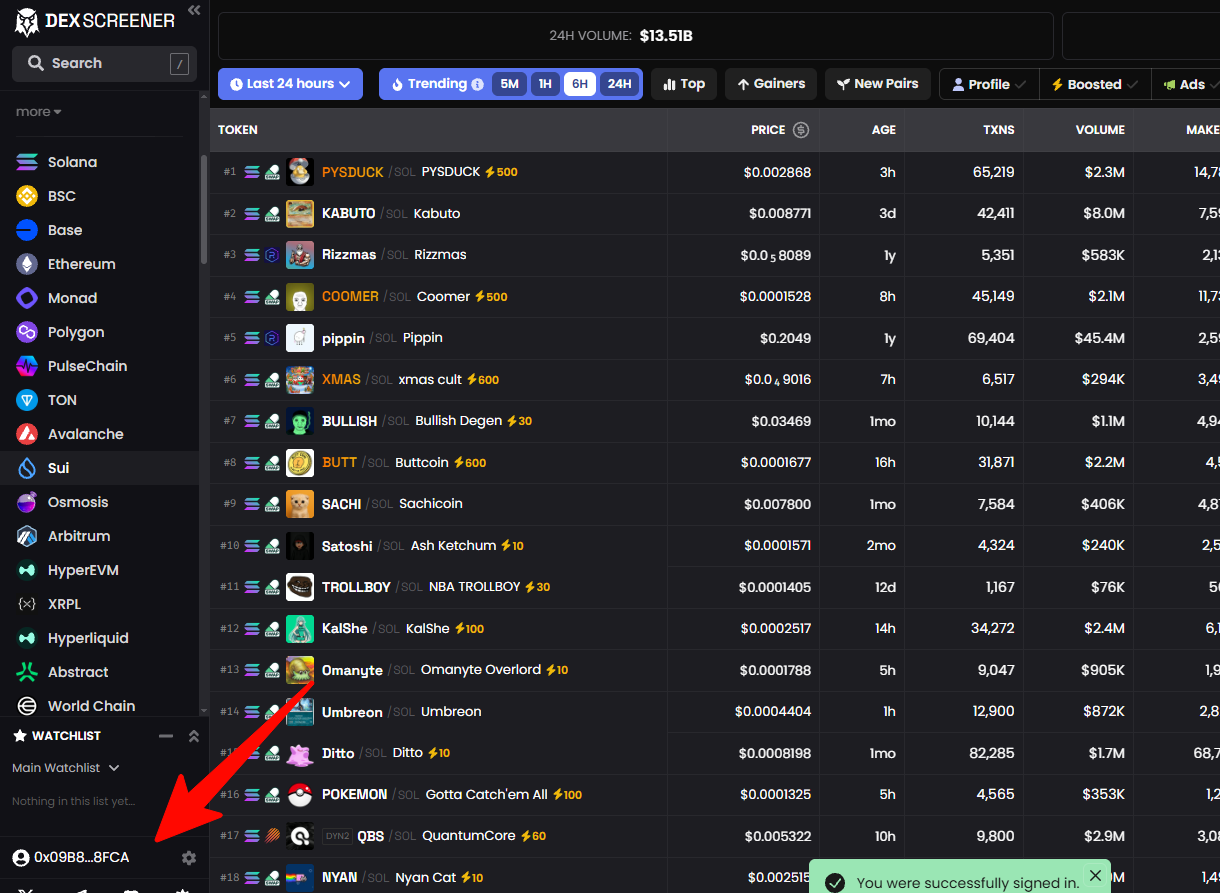 При входе в DexScreener на главном экране отобразится: