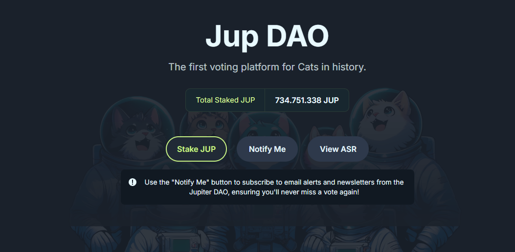 Стать частью ДАО платформы довольно просто: необходимо заблокировать определенное количество токенов JUP, и взамен вы получите право голоса и возможность создавать предложения по внедрению различных решений на Jupiter.
