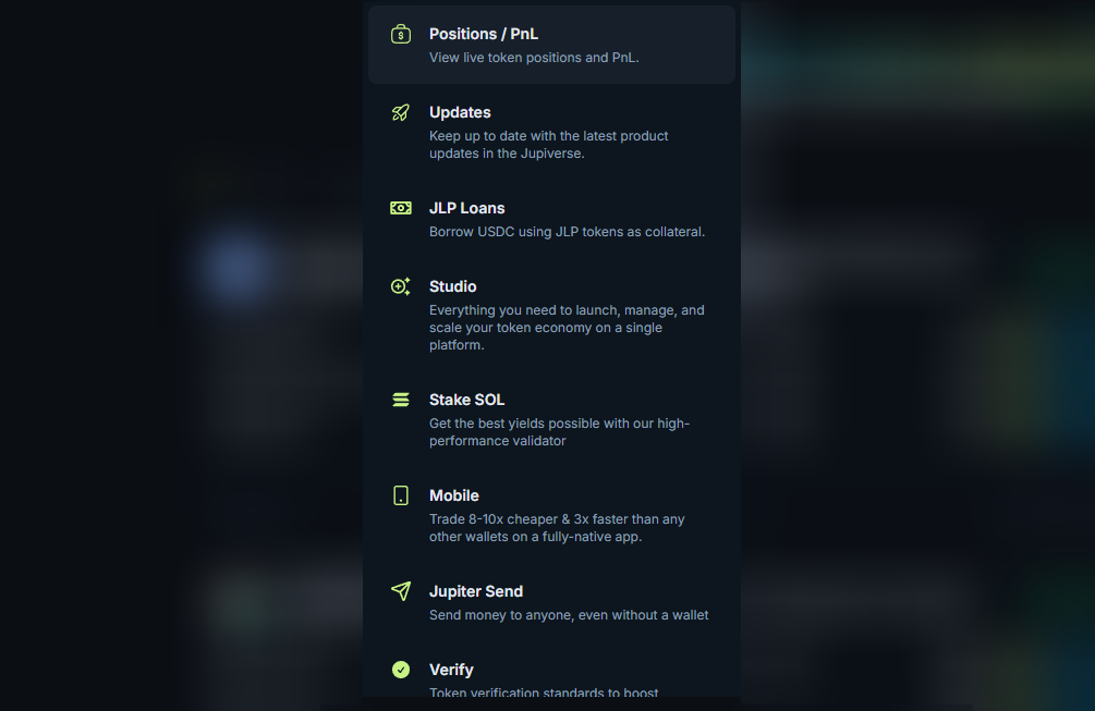 - Stake SOL – стейкинг SOL через валидатора Jupiter.