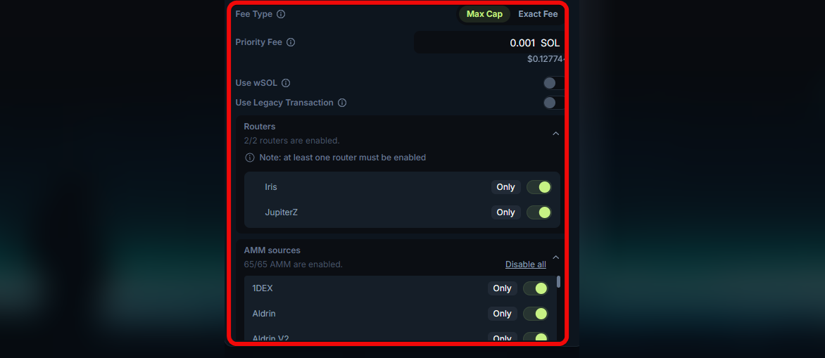 Можно так же выставить приоритетные комиссии для ускорения транзакций, использование только маршрутов, поддерживаемых Jupiter, использование обернутого SOL вместо нативного, использование устаревшего формата транзакций и исключение определенных автоматических маркет-мейкеров из маршрута обмена.
