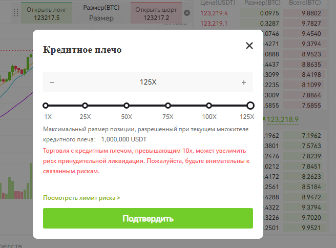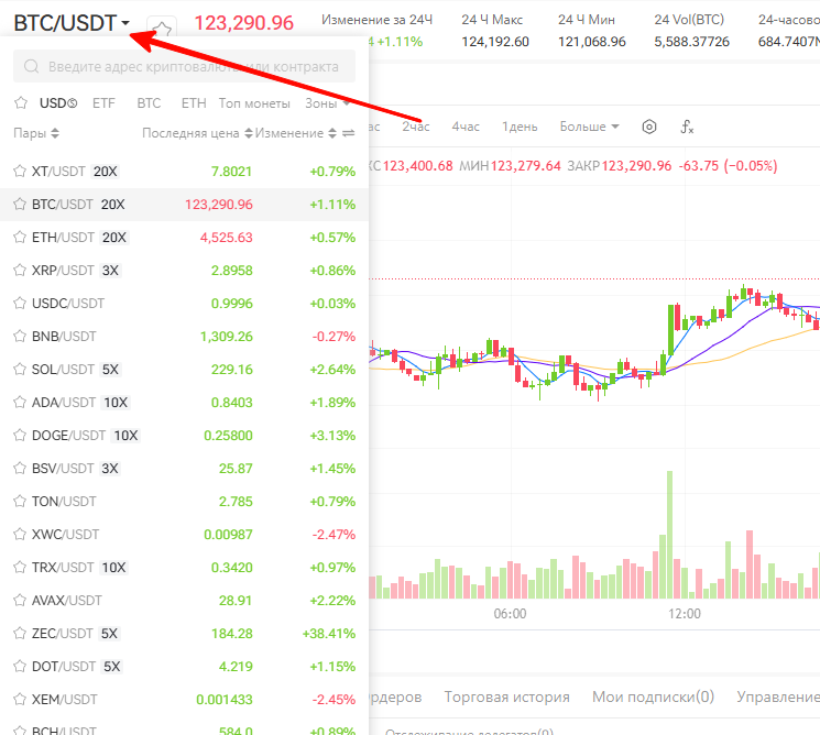 На XT есть торговля с плечом до x125!