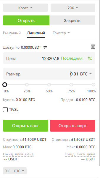 1) Лимитный ордер: установите цену и количество, нажмите «Открыть лонг» или «Открыть шорт».