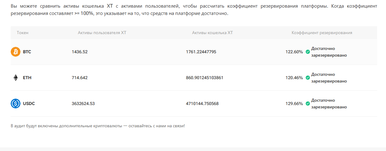 Полное и мгновенное покрытие в случае взлома. Биржа официально подтверждает, что имеет резервы в размере 1:1. |