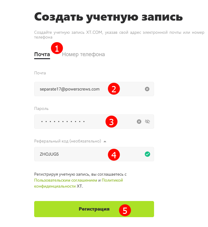 - Выберите способ регистрации: через телефон / Email