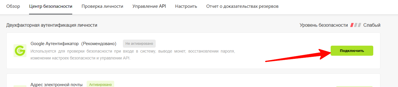 Откроется новая страница. На ней выберите пункт «Google Аутентификатор» и нажмите на кнопку «Подключить».