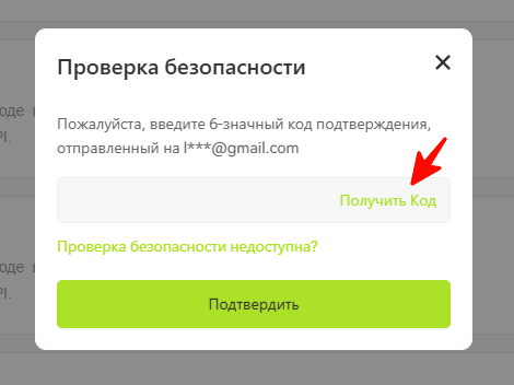 Нажмите на кнопку «Получить код». Откройте Вашу почту и скопируйте код. Далее вставьте его в это поле и нажмите на кнопку «Подтвердить».