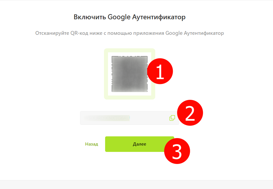 - Скопируйте код. Он нужен для восстановления доступа к бирже, если Вы потеряли мобильное устройство с 2FA. Обязательно перепишите его на бумажный носитель