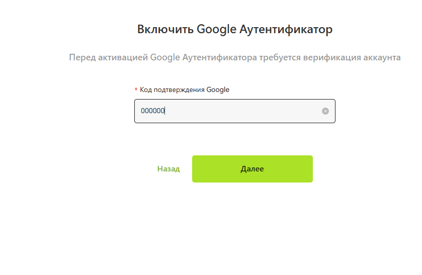 На новой странице впишите шестизначный код из приложения.