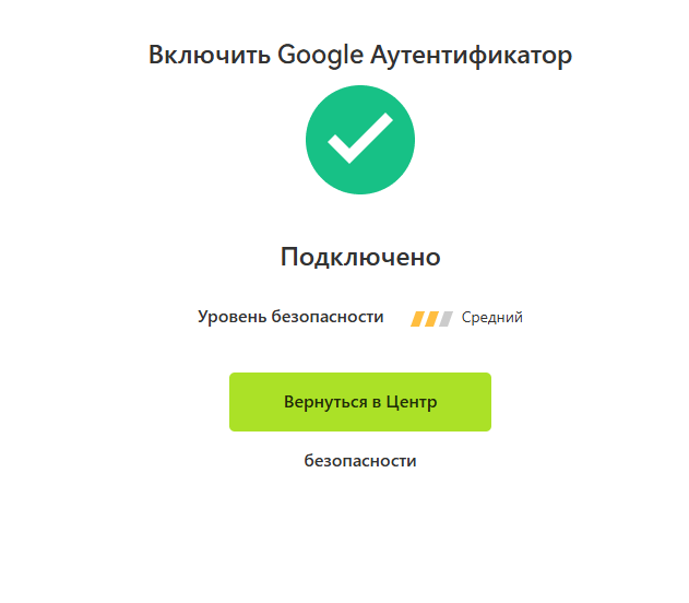 Поздравляем, Вы установили на свой аккаунт дополнительную защиту!