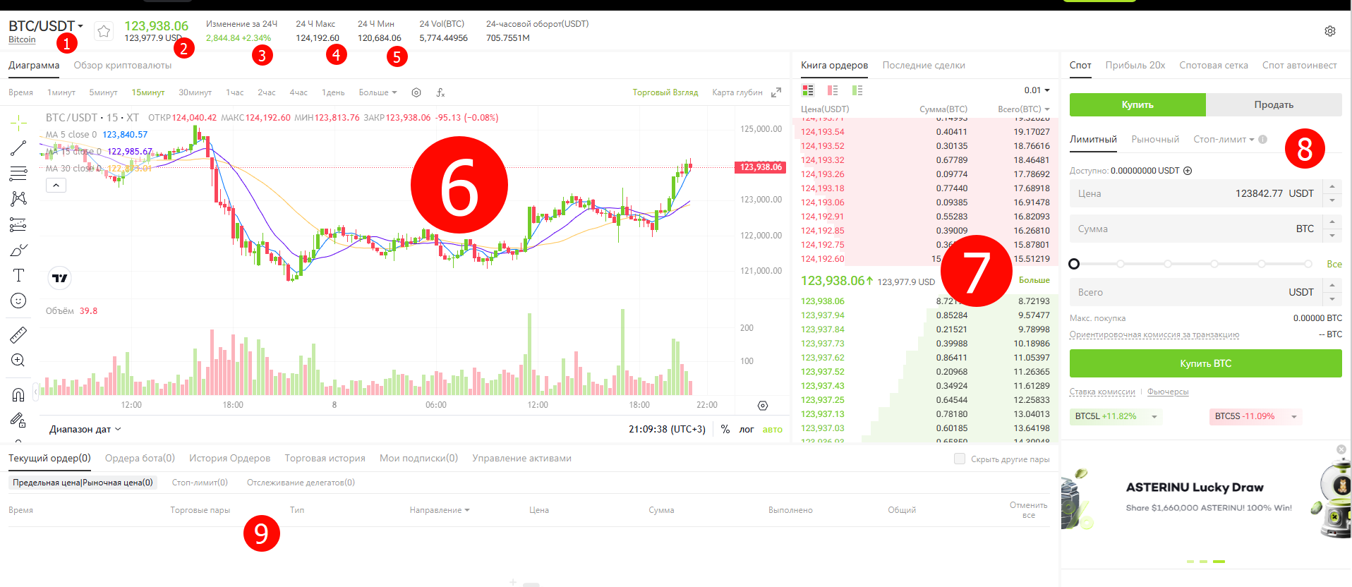- Поле для создания ордера на покупку / продажу
