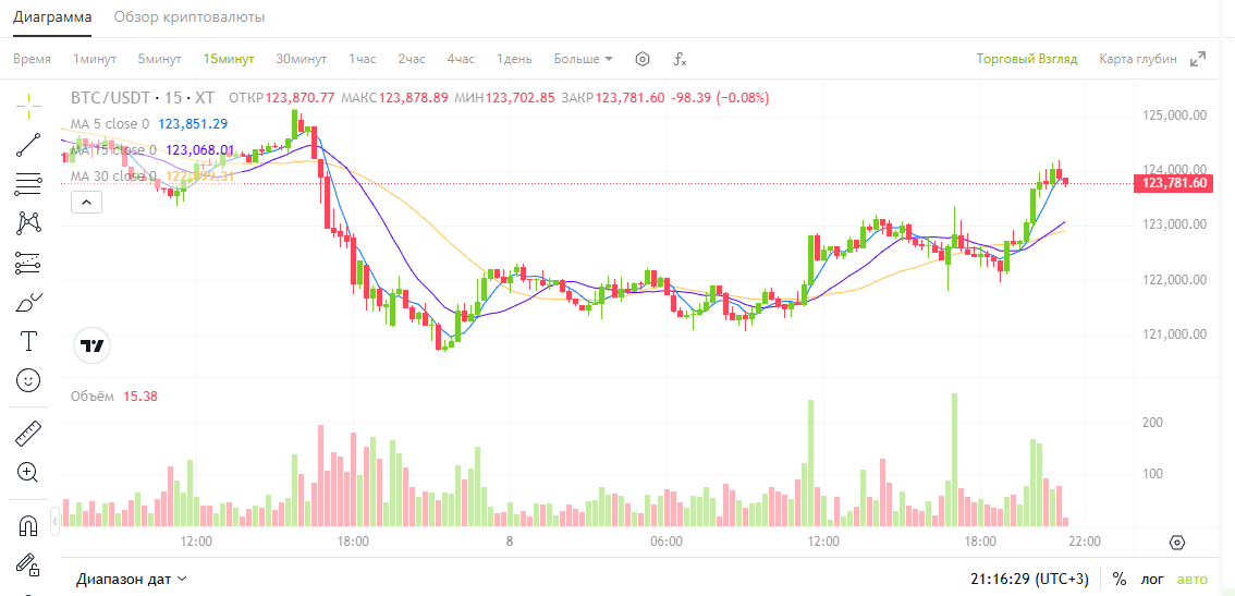Также стоит отметить, что доступен только стандартный график от XT, график TradingView не доступен!