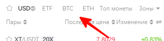 Вверху списка Вы можете быстро отфильтровать торговую пару.