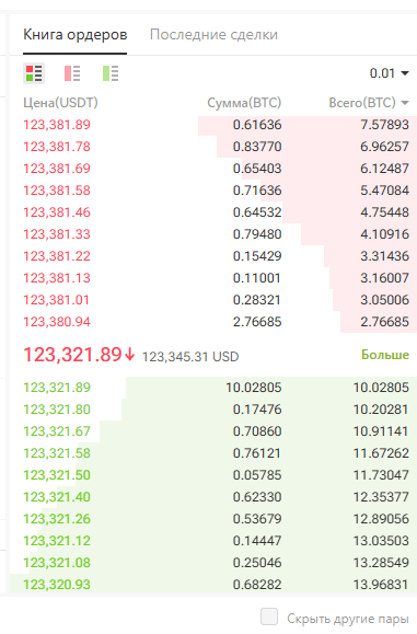 А в соседней вкладке «Последние сделки» - Вы можете посмотреть по какой цене были закрыты последние ордера.