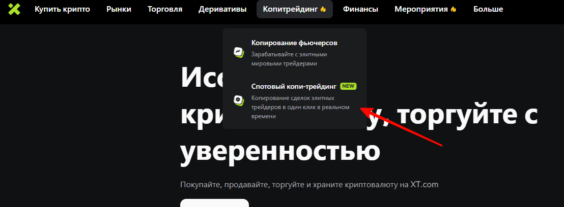 В шапке меню нажмите на Копитрейдинг и в всплывающем меню выберите удобный для Вас тип копирования.