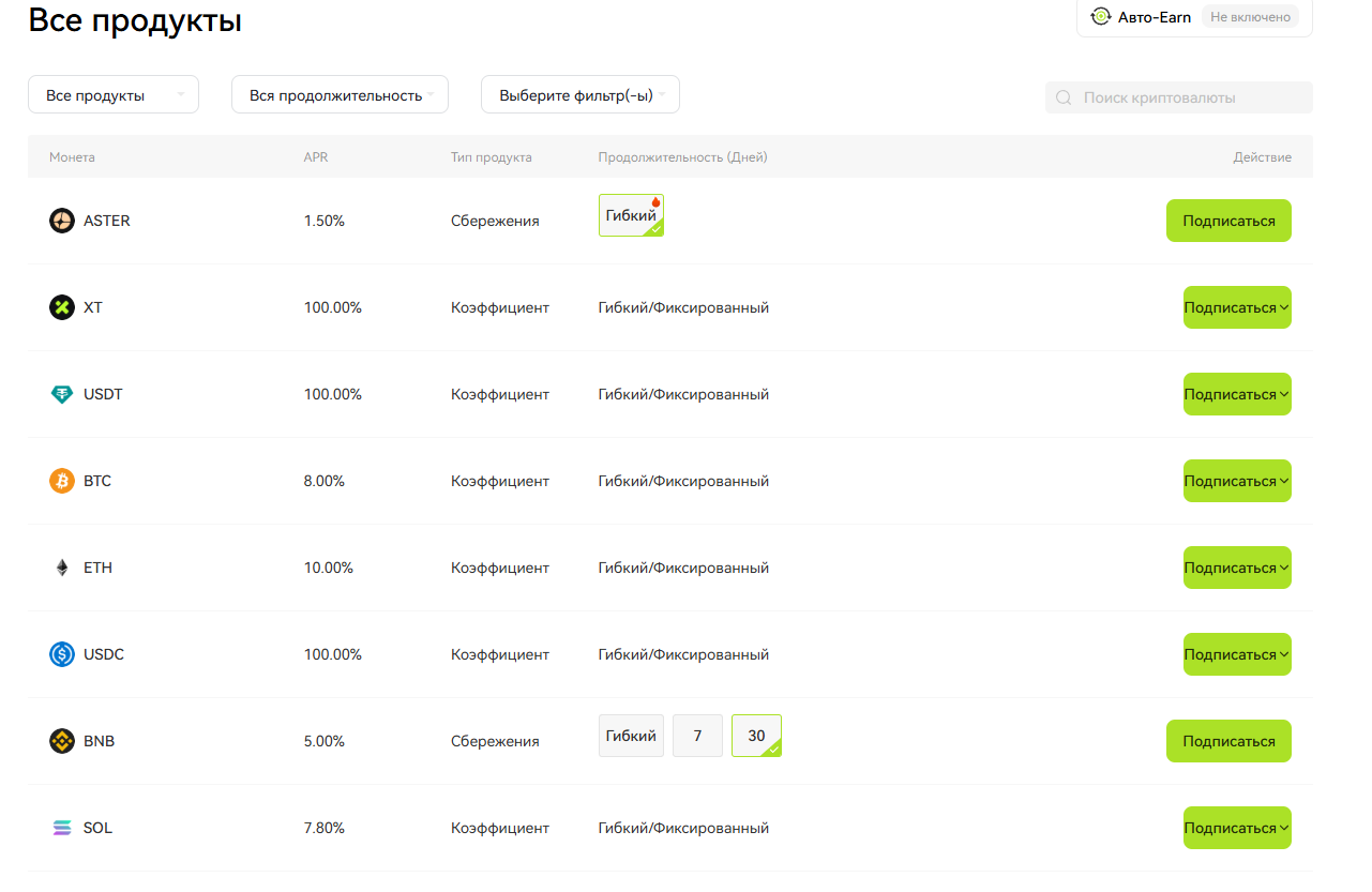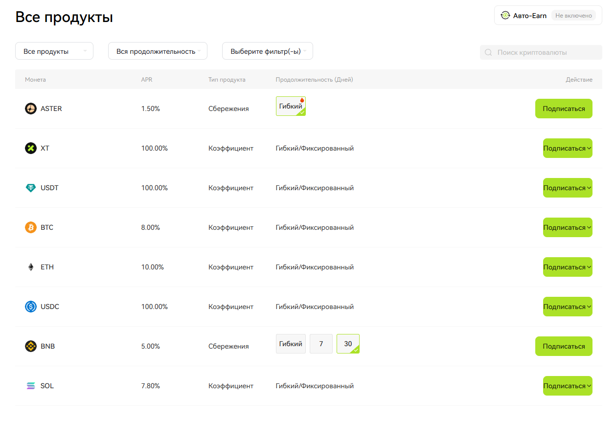 Если Вы готовы держать свою криптовалюту на бирже XT (ЧЕГО МЫ КАТЕГАРИЧЕСКИ НЕ СОВЕТУЕМ ДЕЛАТЬ*), то Вы можете получать пассивный доход, благодаря стейкингу монет.