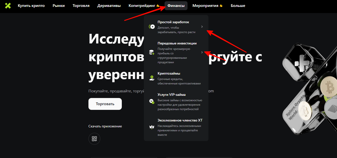 Перейдите в раздел финансы и выберите простой заработок либо передовые инвестиции.