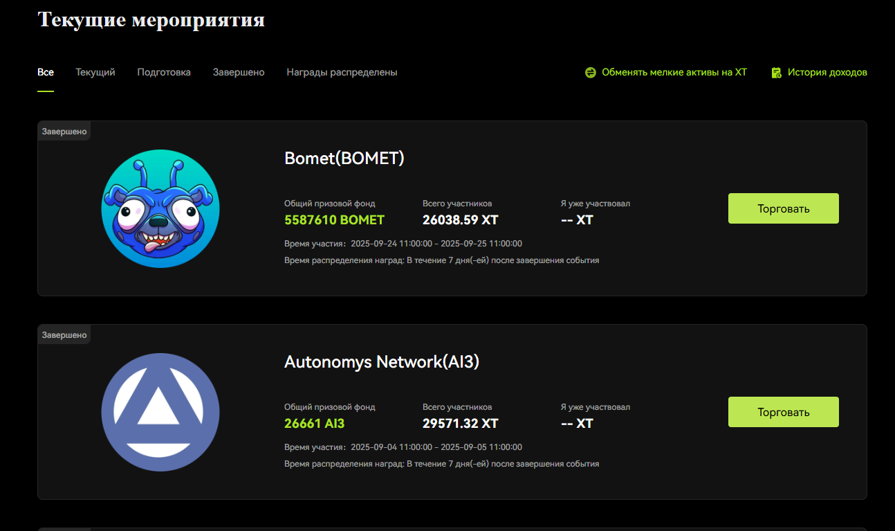 - XT Airdrop - выполняя простые задания, пользователи могут получать вознаграждения