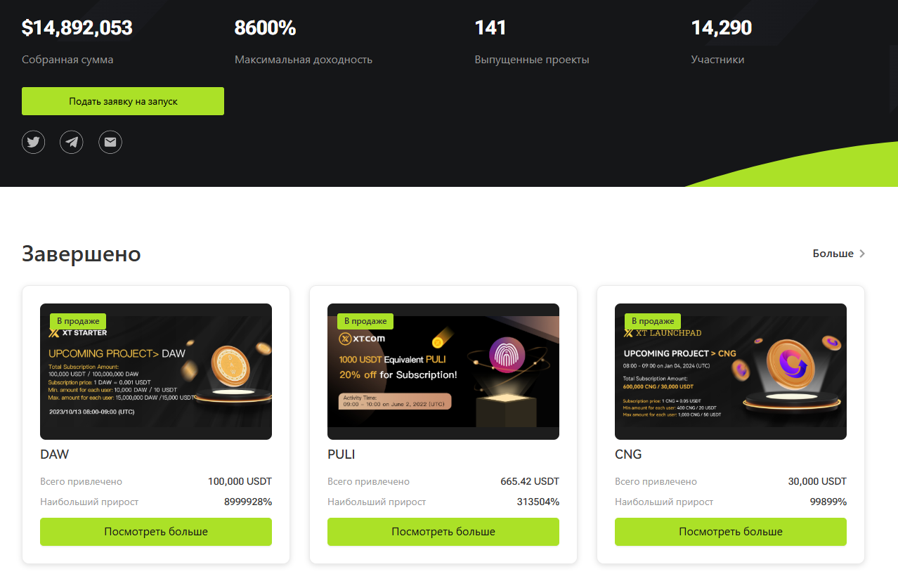 XT Launchpad - это платформа для проектов, предлагающая поддержку запуска и всемирную видимость для новых крипто проектов.