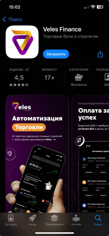 Veles выпустила iOS-приложение для управления торговыми ботами